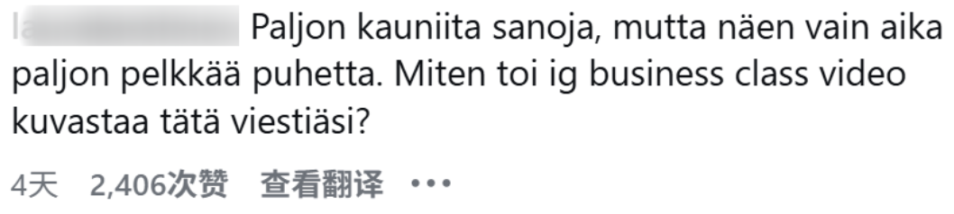 “很有趣的公关套路回复,团队甚至只用芬兰语,没有用英语写出来,演都不演了。”